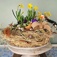 Easter spring bulbs nest table centre